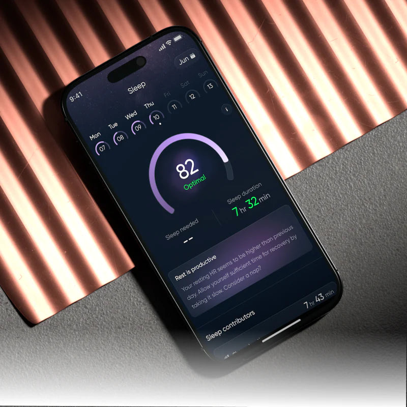 Track sleep, recovery, and wellbeing — effortlessly, from your finger. Subscription-free, no lock ins, no hidden fees.