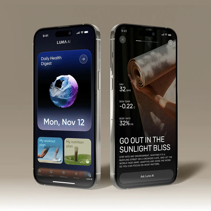 Luna’s AI Coach, powered by LifeOS, transforms your health data into personalised guidance. Instead of presenting raw numbers, LifeOS analyses your biometric signals and helps you understand what your sleep, recovery, and daily patterns actually mean — and how to improve them over time.