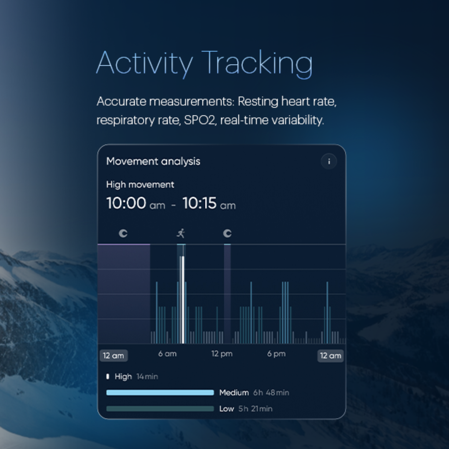 This data is analysed by LifeOS, Luna’s proprietary AI system, and translated in the Luna app into clear, easy-to-understand insights that help you better understand your sleep, recovery, activity, and overall wellbeing — all with no subscription required.